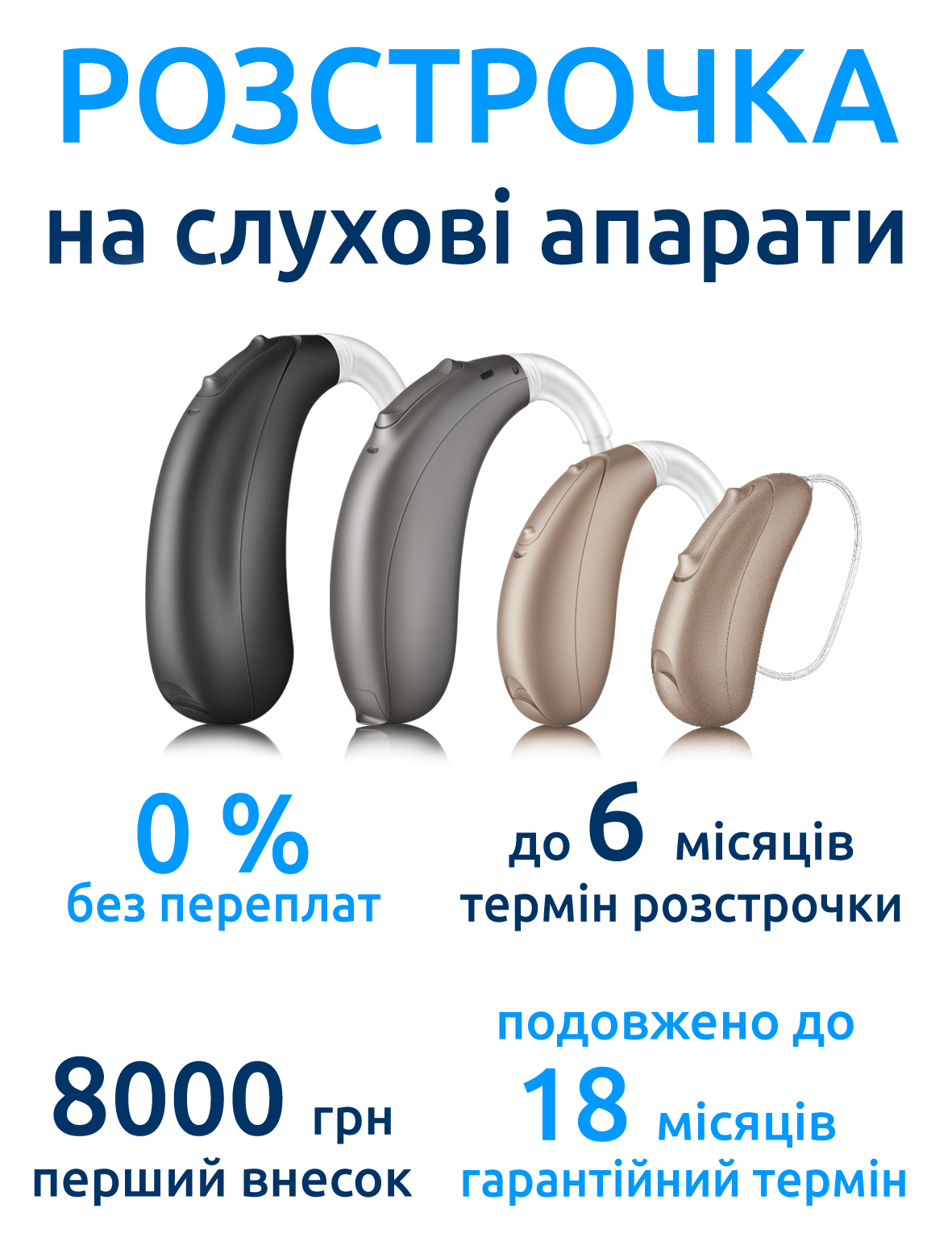 На бажані слухові апарати, як і при безготівковій оплаті, ми виписуємо рахунок. З ним Ви можете звернутись в будь-яку банківську установу для отримання кредиту, або оплатити кредитною карткою.